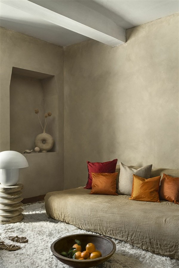 Rusty red complements other rusty or burnt tones, such as orange and yellow. Pair them with plain tones for a warm and complete interior.