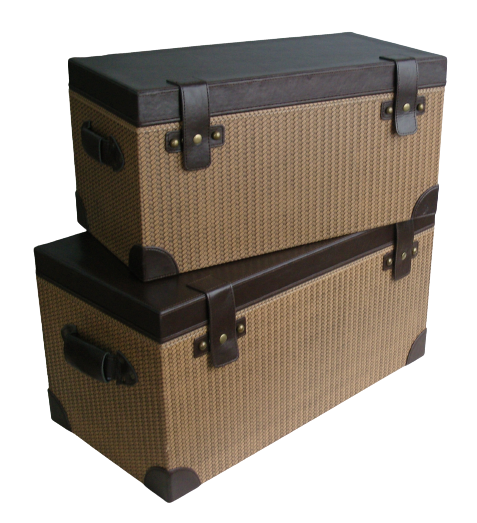 High quality antique trunk set, large decorative storage trunks, faux leather storage trunk.